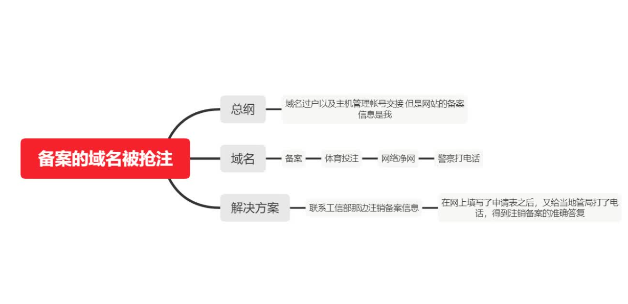 然后有可能的话在跟对方进行沟通,将自己的一些关系进行切割,这是域名备案,域名被抢注的一个,有些事情你需要自己去处理一下,或者讲你这个以后如果你想卖站的时候,这个还是要长个经验的,及时的去将这些遗留在国家备案处的一些信息去及时地清理掉。